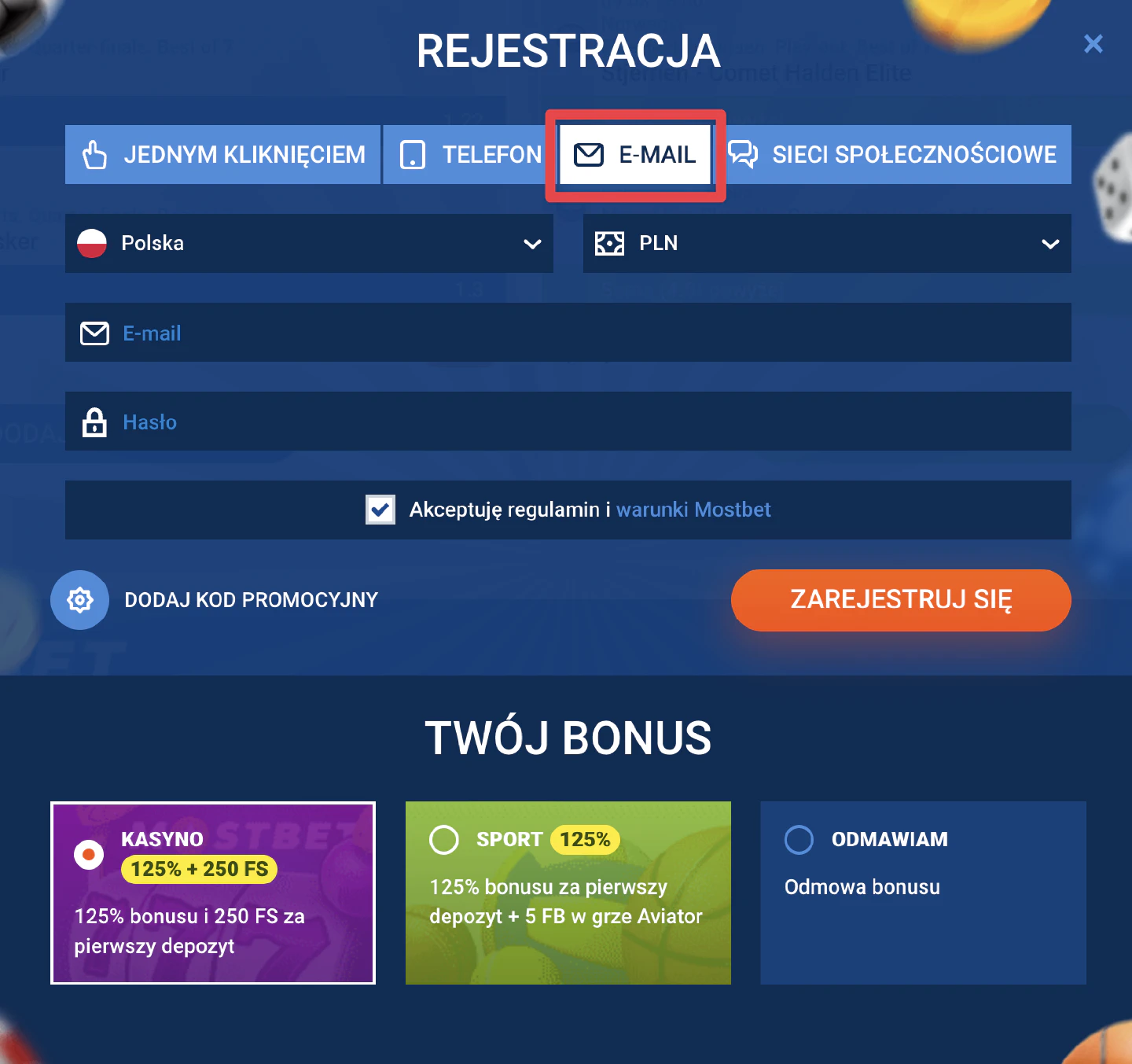 - Zaakceptuj Regulamin i Politykę Prywatności MostBet.